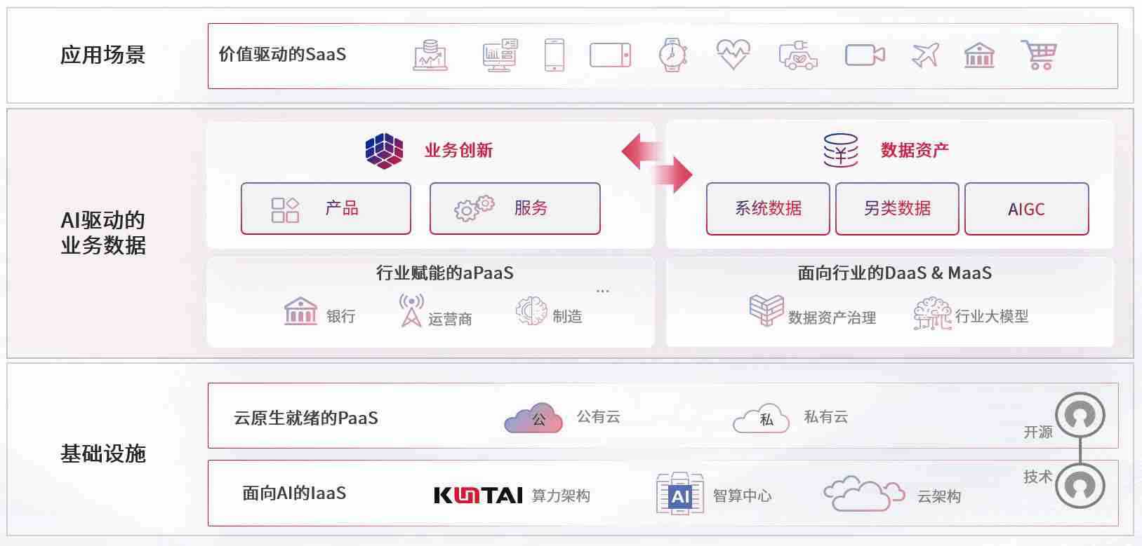 数字时代,,围绕企业数字化转型的关键要素,,,,z6尊龙数码开创性的提出数云融合战略和技术体系框架,,,,着力在云原生、、数字原生、、、AI原生和信创产业上架构产品和服务能力,,为处在不同数字化转型阶段的快消零售、、、汽车、、金融、、医疗、、、、政企、、教育、、、、运营商等行业客户提供泛在的敏捷IT能力和融合的数据驱动能力,,,,构建跨界融合创新的数字业务场景和新业务模式,,助力企业级客户建立面向未来的核心能力和竞争优势,,全面推动社会的数字化、、、、智能化转型升级。。。。