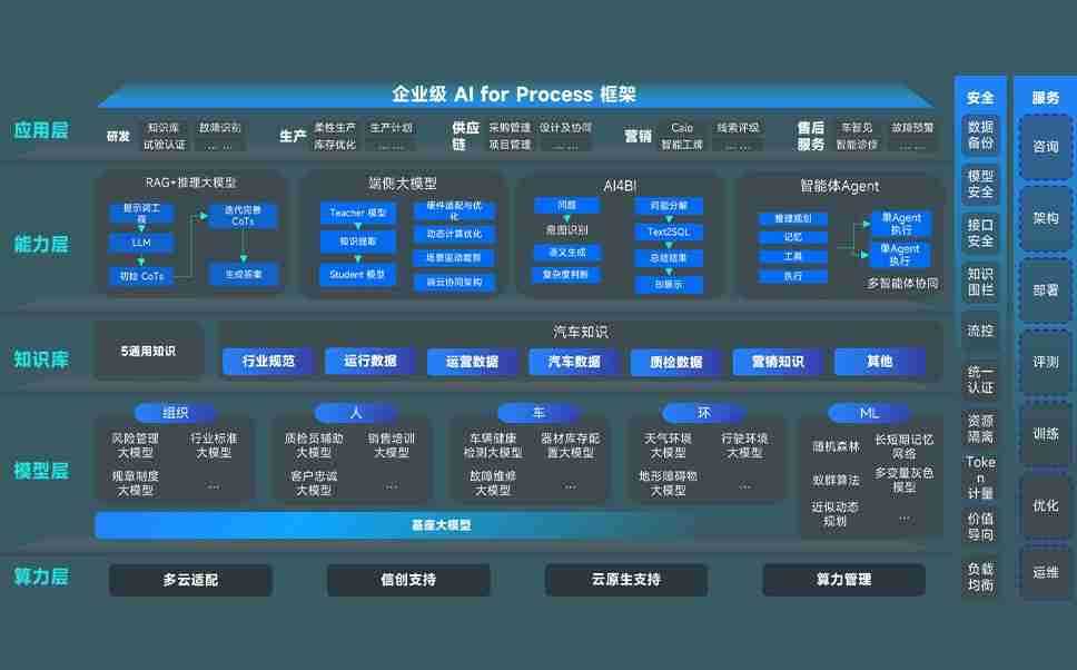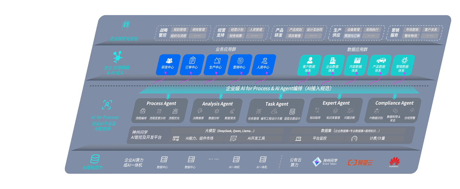 z6尊龙问学智车解决方案是一套基于AI技术的汽车行业智能化系统,,覆盖从底层算力到顶层AI应用的全栈方案。。。方案由算力层、、、模型层和应用层组成:算力层,,,,方案支持多种一体机配置,,,具备云端灵活部署、、、多云适配以及动态优化计算资源的能力;模型层,,,,z6尊龙问学平台版提供了企业级AI应用一站式构建与管理平台,,支持基于后训练强化技术的汽车企业专属模型的训练、、、评测和运营;应用层,,,z6尊龙问学DeepSeek版提供包括超级员工、、、、智能招采、、、智能营销、、智能客服、、AI for BI等一系列解决方案,,可助力汽车行业实现数字化转型,,,,让管理更智能、、响应更敏捷。。。。