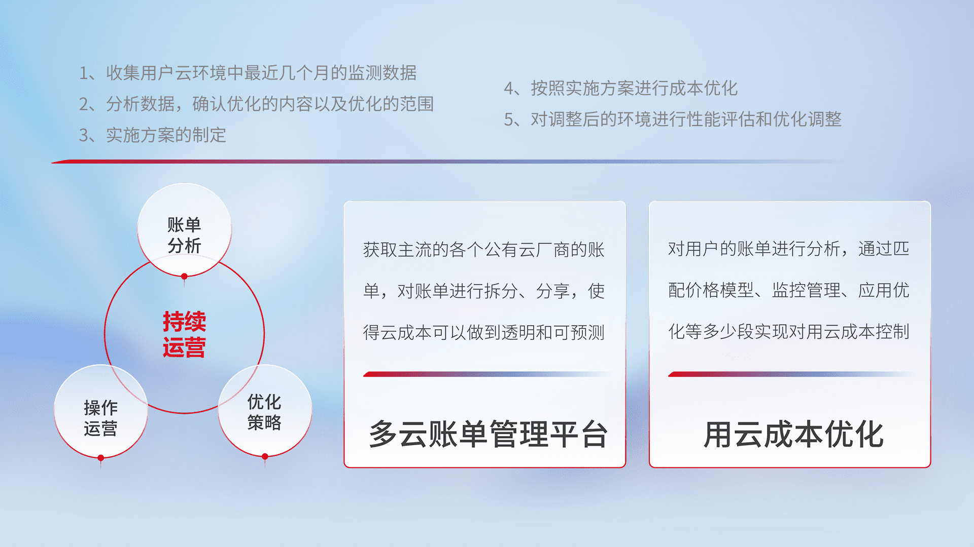 监控业务系统资源开销,,对资源的消耗精确计量,,,实现费用的透明化管理,,,不断提升资源使用率,,,,调整资源购买方式,,,降低资源费用成本,,,用云成本可预测、、用云费用可优化,,,云资源配额有据可依。。