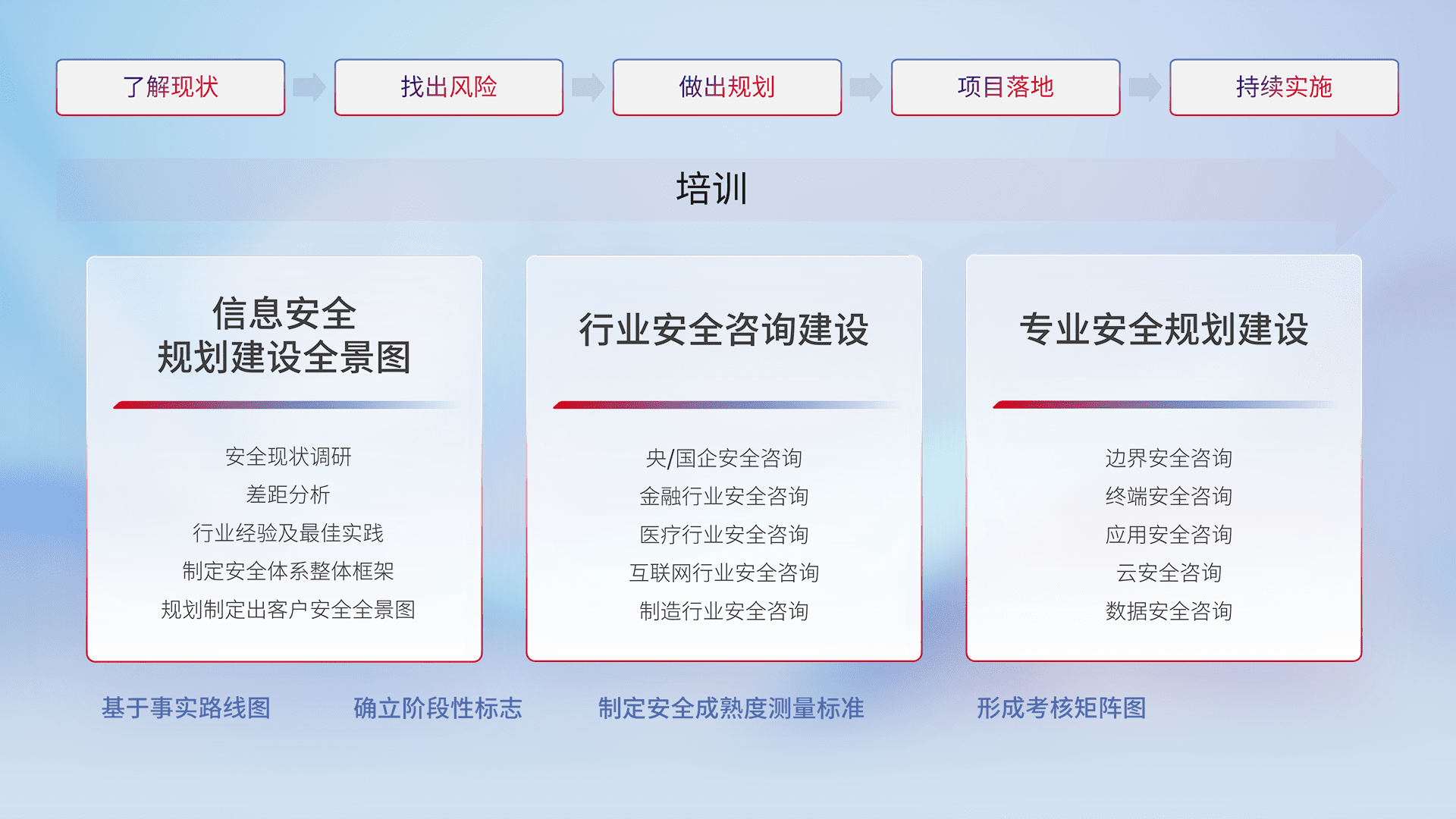 梳理客户信息安全现状调研、、差距分析结果,,,,结合行业先进经验及最佳实践,,,,制订客户的信息安全管控体系总结架构,,最终形成一个完整的客户信息安全规划与建设的全景图。。。