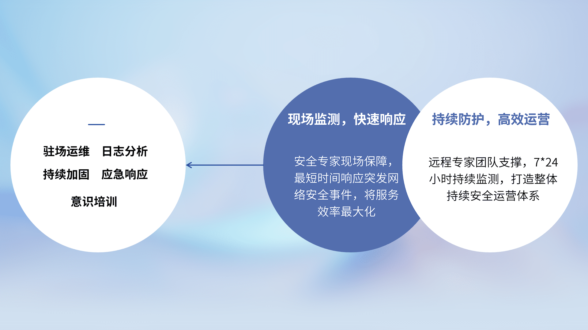 针对客户行业特性,,提供专属的一站式安全管理服务,,,帮助客户全面感知网络空间威胁,,通过安全专家的线上、、、、线下防护支持,,实现风险闭环,,,,将安全保障常态化,,,,为客户打造常态化安全运维运营服务。。。。
